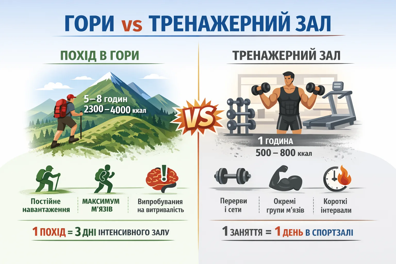 Одразу уточню що головним нашим тренажером у дослідженні буде саме процес сходження у гори. І скажу вам питання ефективності однозначно не просте, оскільки результат буде залежати від дуже багатьох факторів. А саме: