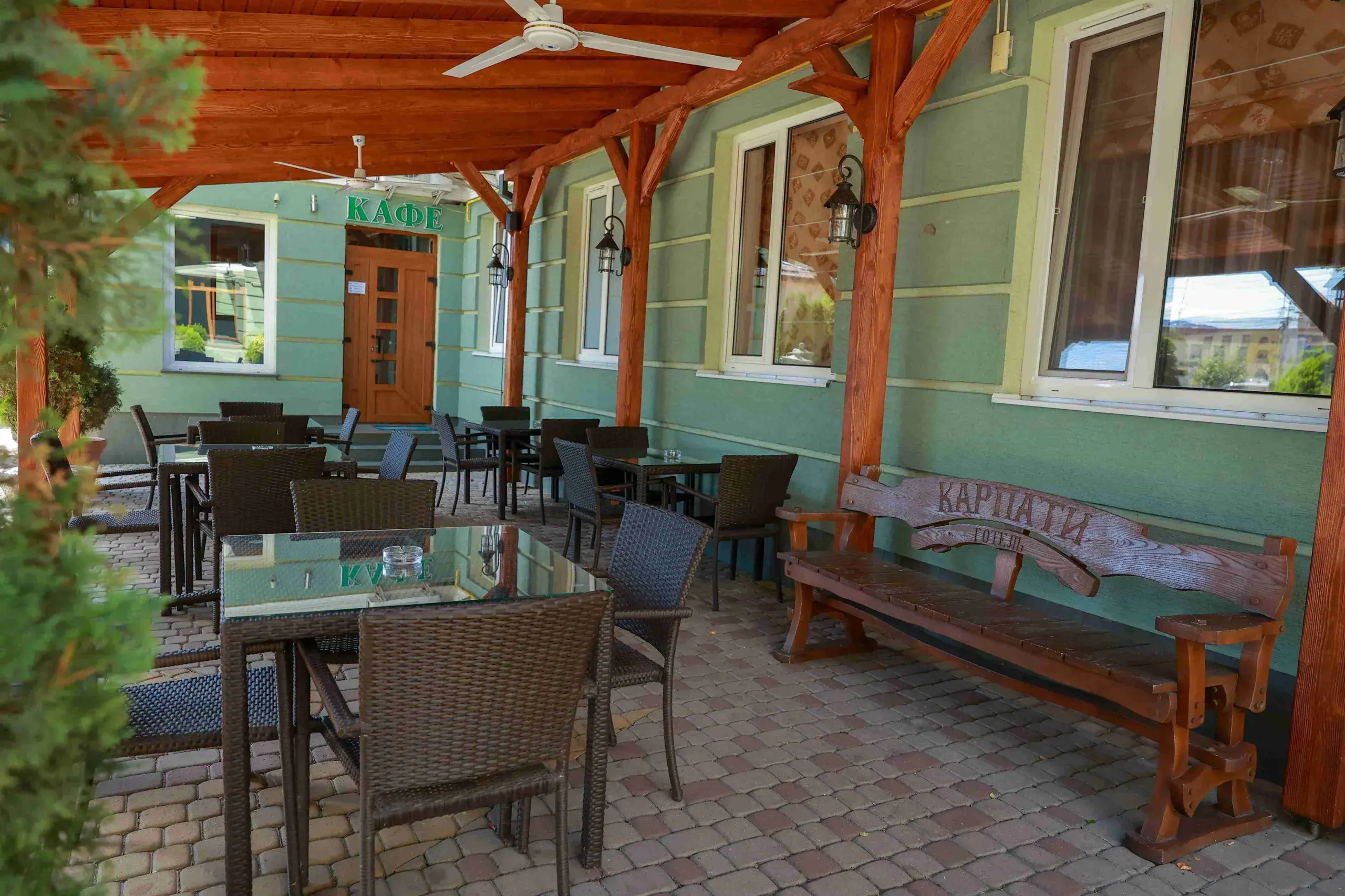 Гості можуть скуштувати страви української та інтернаціональної кухні в ресторані готелю .Сніданок не входить в вартість проживання. Крім великого басейну готелю Карпати, ви зможете провести час в сауні, де можна добре відпочити. Деталі за телефоном: 0984446979