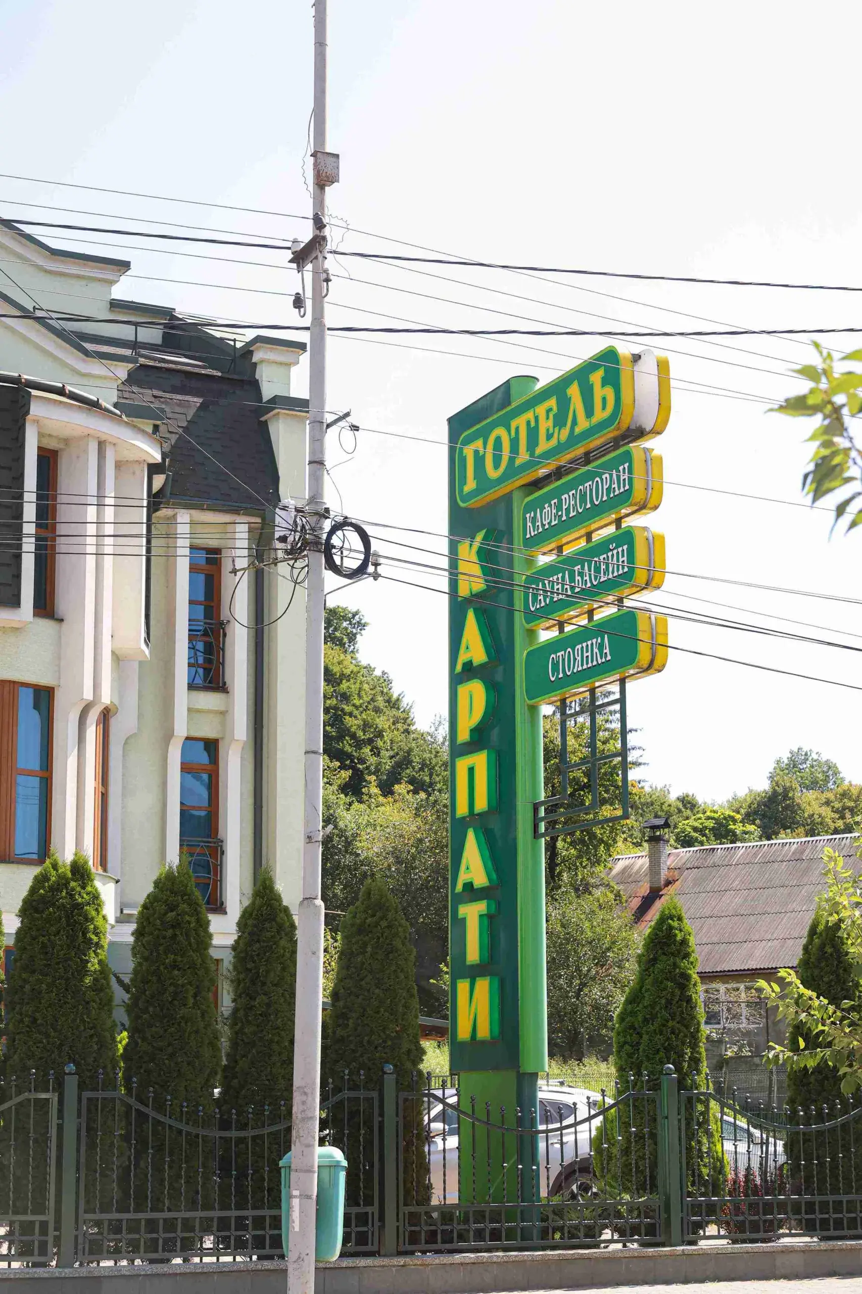Знаходиться готель в Хусті під Замковою горою, на вершині якої розташовані руїни Хустського замку. У 10 хвилинах ходи від готелю Карпати – автомобільний і залізничний вокзал. Відстань до центру міста – 1 кілометр. Кордон Угорщини – всього у 20 хвилинах їзди. Нарцисове поле розташоване на відстані 5 кілометрів, Шаян – 14 кілометрів, Велятино – 6 кілометрів.