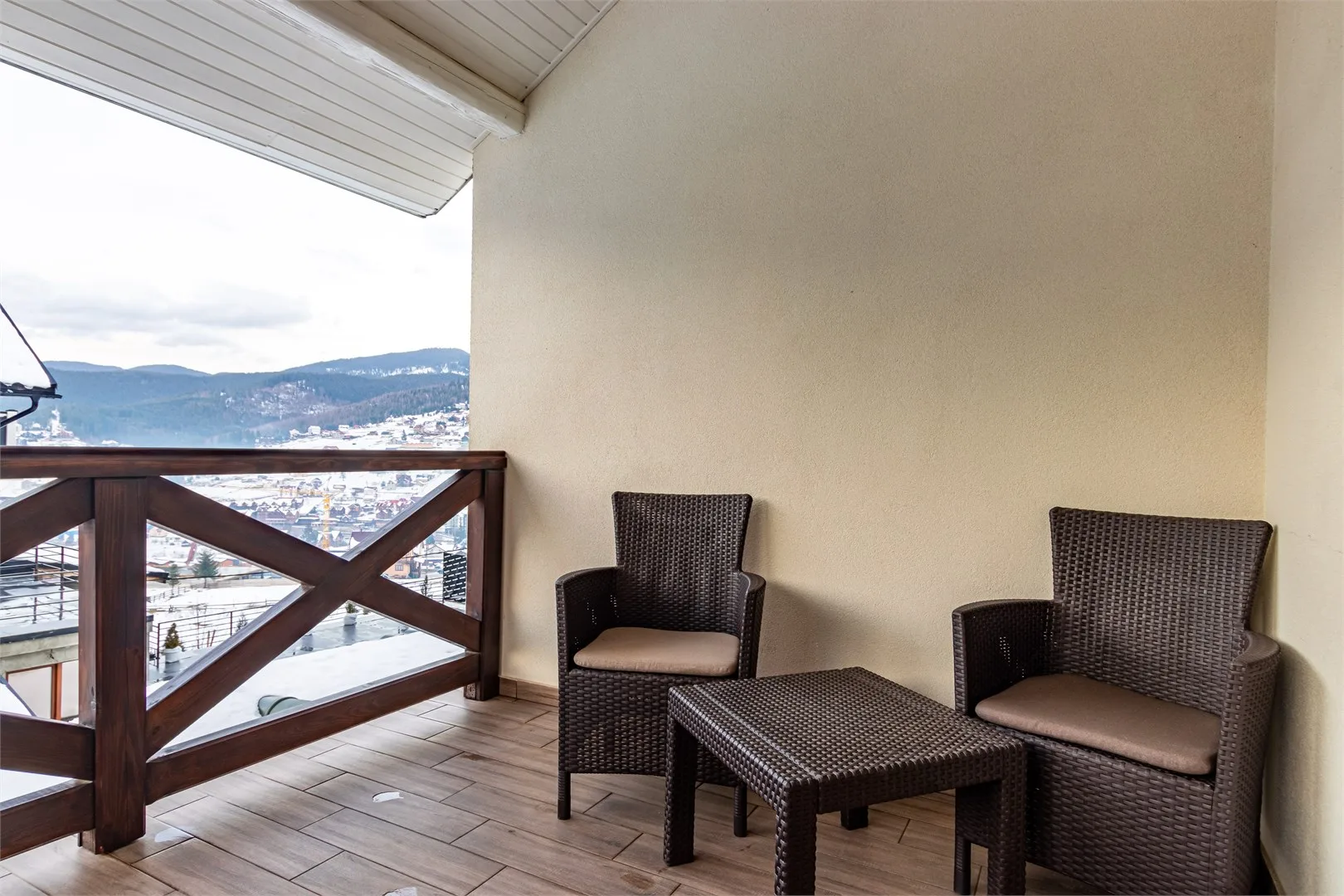 Частина номерів обладнана балконами з видом на гори.